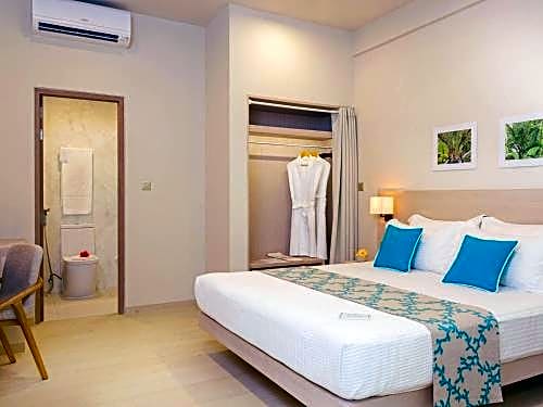 Sunset Beach Pool suite is 1076 square feet and includes a king-size bed 150-183 width plus a sofa bed.